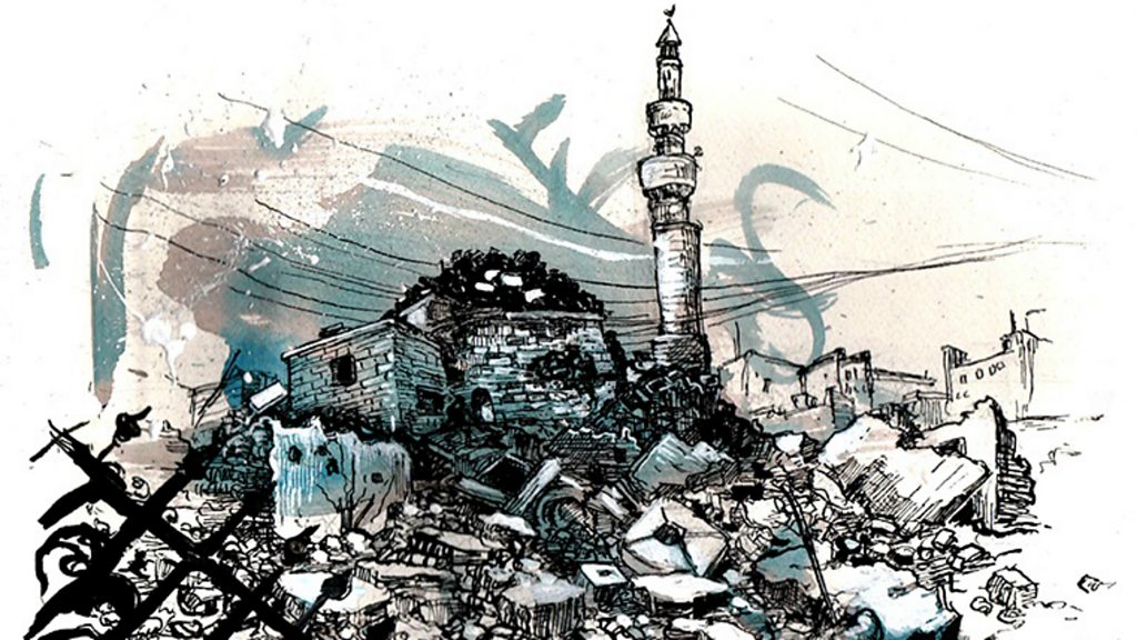 We meet the New York artist targeting Islamic State with her drawings. The renowned surgeon and writer Atul Gawande reflects on ‘Being Mortal’ and the death of his father. And an American undertaker describes ancient burial rituals and customs from around the world. Also, we visit a California church trying to preserve the culture of Coptic Christians. Why the Florida cigar industry is looking over its shoulder at Cuba. And how the fruit and vegetable section of the supermarket looks to a migrant farmworker. (Photo: An artistic rendering of the now destroyed Prophet Jirjis mosque, in the Iraqi city of Mosul. Credit: Molly Crabapple/Vanity Fair)
