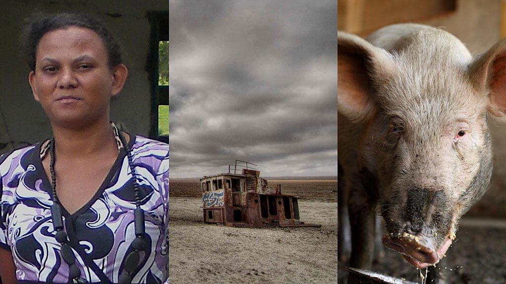 Marisa de Toledo from Sao Paolo state in Brazil is 27 years old, has a husband and three kids and leads a normal life. But she feels no pain at all and never has. Congenital insensitivity to pain is an extremely rare condition - it's estimated that perhaps only 50 people worldwide have it. Outlook's Gibby Zobel went to talk to Marisa to see how it affects her and her family. A year on from Kiev's Maidan massacre, Volodomir Golodniuk talks about his pride in his teenage son Ustym who was shot dead by an unidentified sniper. Thirty-one years ago British couple Janet and Graham Walton had six baby girls in four minutes. It was a world first and the Waltons have lived in the media spotlight ever since. It took just 40 years for the Aral Sea in Central Asia to disappear. Latest satellite pictures reveal that 90% of the water has dried up, forming a new desert between Uzbekistan and Kazakhstan. Fishing ports were suddenly in the middle of a desert, and the local economy came to a standstill. Marjan Baybol-Kizi in Kazakhstan remembers watching the sea vanish. Federica Trivelli and her team of volunteers run a pig sanctuary in Italy. (Photo: Marisa de Toledo, Aral Sea, pig)