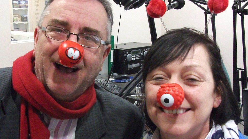 Presenters Liam Logan and Anne Morrison Smith getting in the mood for Red Nose Day