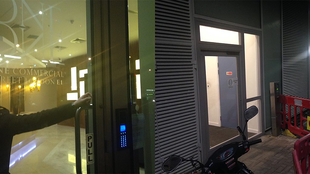 Tom Bateman visits a London apartment block with front and back entrances for private and social housing and speaks to people using both doors. One resident, who uses the front entrance and so called 'rich door', dismissed the terms 'poor' and 'rich' doors. "I do not think it's a valid term, a door is a door," she said. Residents using the back entrance think it is unfair that they have to use a separate entrance and want to be treated equally. "Where my door is is next to the rich building...I use the rich lift when the door opens and they try to tell me off," one of them told the reporter.