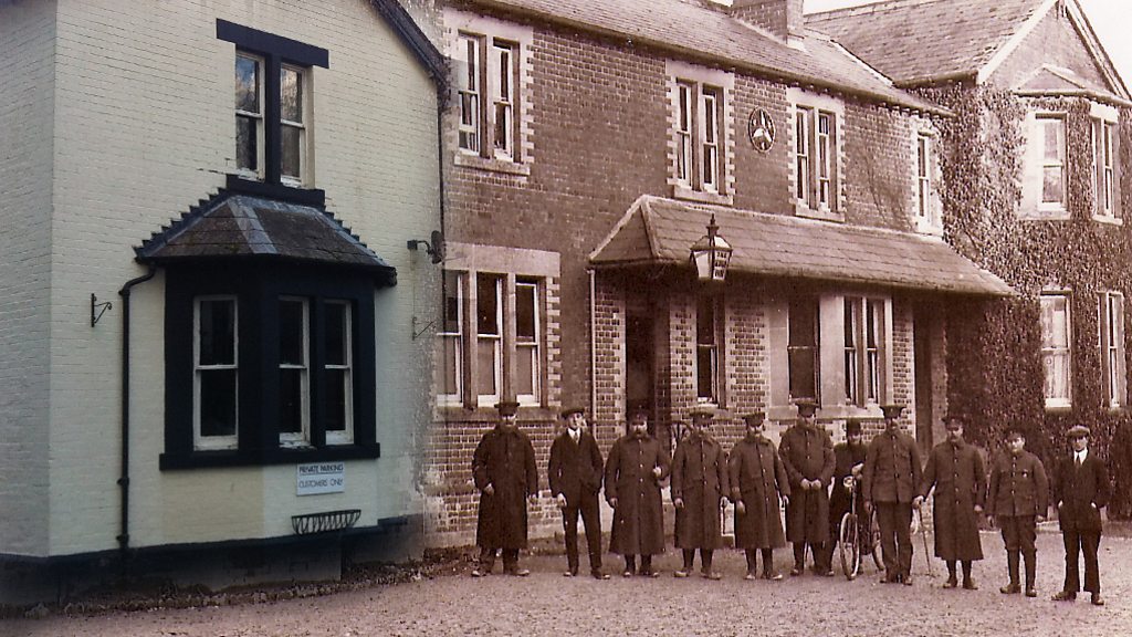 Codford St Peter and Codford St Mary, in the Wylie Valley, were home to 500 residents before World War One. Soon after war was declared, that small number rocketed to over 20,000 as soldiers from around the world were camped on their doorsteps. Soldiers suffered a terrible winter, bemoaning Codford’s chalky mud; local streams were filled with soldiers bathing in cold water and houses on the high street turned frontages into impromptu stalls, supplying the soldiers’ every need. Romy Wyeth is a local historian and has been telling BBC Wiltshire about the village’s wartime experience. Location: Codford, Wiltshire BA12 0PP Image: Cycling club outside the George Hotel during WW1