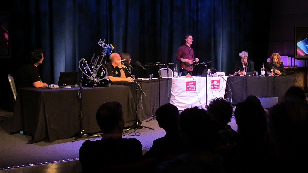 Our excitement over space has taken on new dimensions with nations such as India showing they too have the technical expertise and energy to mount a mission to Mars. Citizen Science has also shown how ordinary people can make important contributions to the space adventure. Myriad groups of volunteers have launched their own ambitious projects: such as the team who decided to awaken a spacecraft, more or less forgotten by NASA; and another team who plan to build the first crowd-funded moon lander. In a special edition of Click, Gareth Mitchell and Bill Thompson are joined by a panel of experts to explore our fascination with Space, and to discuss how our knowledge of life beyond earth benefits from the input of volunteers and Citizen Science. Main Image: The Click Panel, in the BBC Radio Theatre, London, with presenter Gareth Mitchell (standing).