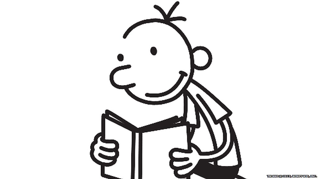 The American author of Diary of a Wimpy Kid, Jeff Kinney, says a little bit of Salinger's Holden Caulfield character has rubbed off on his character Greg Heffley. (Photo: Wimpy Kid character, Greg Heffley, reading while sitting on a large pile of books) (Credit: TM and © 2015, Wimpy Kid, Inc.)