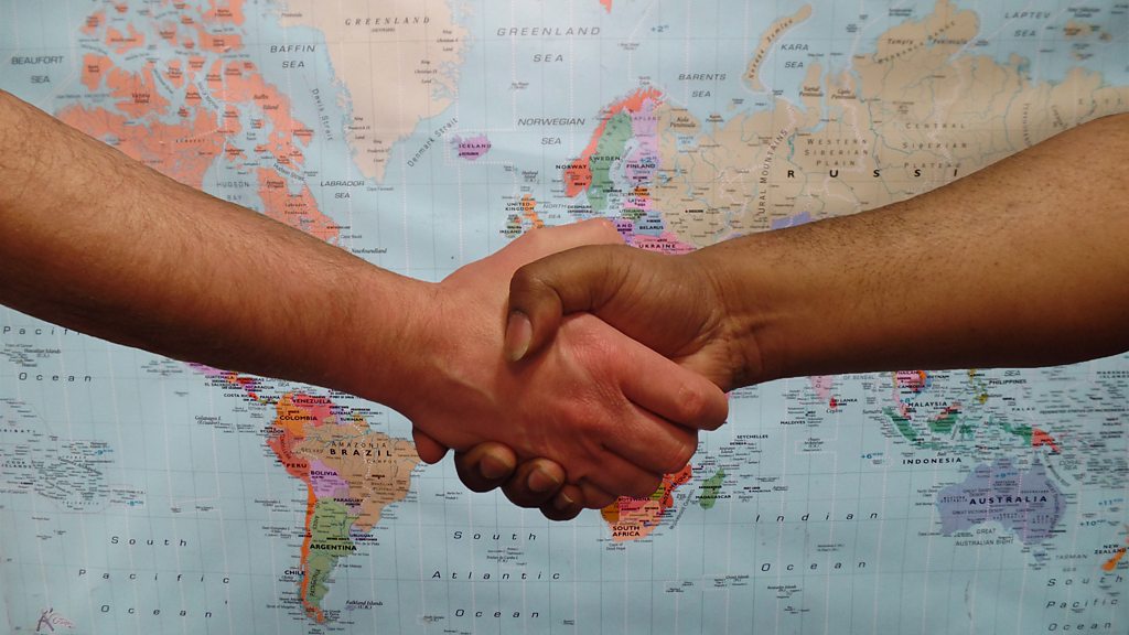 How do we ensure international trade deals benefit everyone, instead of serving the interests of a privileged few? Bridget Kendall asks the Nobel Prize winning economist Joseph Stiglitz, the world trade expert Arancha Gonzalez, and the Colombian lawyer Oscar Guardiola-Rivera for their thoughts. (Photo: two people shaking hands in front of a map of the world. Credit: Shan Pillay)