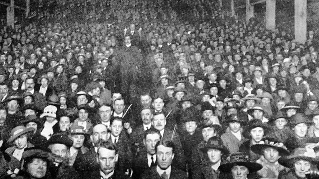 Known to millions as the radio voice of Romany, who on BBC Children’s Hour in the 1930’s; spellbound a generation with his tales of life in a gypsy caravan. These communication skills served him well, when as a young Methodist Minister in Carlisle, he reached out to a new audience of munitions workers by holding religious services with musical entertainment in a popular cinema. Bramwell Evans was a Methodist Minister, from a travelling family. He was appointed to Union Street Church in 1914 and moved to Fisher Street in 1917 (this became Rydal Street in the 1950's). Evans and the Methodists in the city identified a need for social support for munitions workers especially men kept out of their lodgings at weekends, and to look after young women away from home. They set up a club for men at 13 Fisher Street, and a club for girls. He found lodgings for over 1,000 men, women and married couples who came to work in Carlisle. He recognised that just preaching and complaining about the evils of drink would not solve the problem, so he established Sunday evening services in Botchergate Cinema. He also offered a concert with the service attracting good quality singers and musicians. These ran from January to April 1916, and October 1916 to April 1917. Remarkable photographs and material produced for a souvenir programme printed at the time, illustrate one of the unknown episodes in the early life of a man who went onto become a household name on radio and through his books. Location: Botchergate, Carlisle CA1 1QS Image: A congregation gathered at Botchergate Cinema, courtesy of David Carter