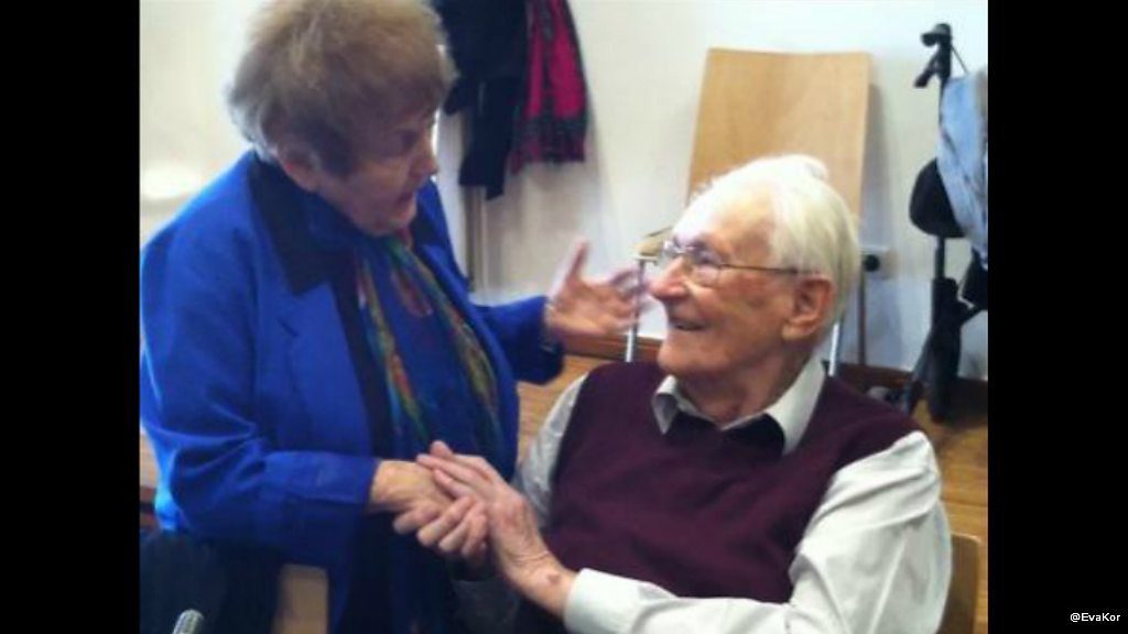 Holocaust survivor Eva Kor is pictured hugging the former Nazi Oskar Groning as he stands in the dock accused of complicity to murder 300,000 people. She had travelled to Lunenburg in Germany from the United States to testify against him and tell the court how she and her twin sister had been experimented on by Josef Mengele when they were in Auschwitz. "I am not a poor person, I am a victorious human being, who has been able to rise above the pain, forgive the Nazis, not because they deserve it but because I deserve it. "As long we understand my forgiveness that the victim has the right to be free, you cannot be free from what was done to you, unless you remove it from your shoulder as a daily burden of pain and anger." Sarah Montague also asked Eva Kor if she meant to hug him: "No not really, I was always interested in meeting him face-to-face because I believe there is a human interaction that I cannot predict and no-one can predict. "I did want to tell him that I was there to testify and also thank him to having some human decency for accepting responsibility for what he has done," replied Eva Kor.