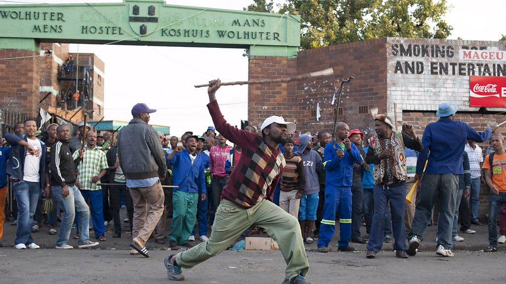 The violent riots on the streets of South Africa in recent weeks have seen foreigners killed, their shops looted and 5,000 left homeless. They are accused of taking jobs from locals in a country where high unemployment is a big concern - and an example of the gaping chasm that remains between rich and poor. So 21 years after Nelson Mandela pledged to liberate all South Africans from the continuing bondage of poverty and deprivation, why is South Africa one of the most unequal societies on the planet? (Photo: South African man waves a stick in the air, while demonstrators are chanting. Credit: Stefan Heunis/Getty Images)