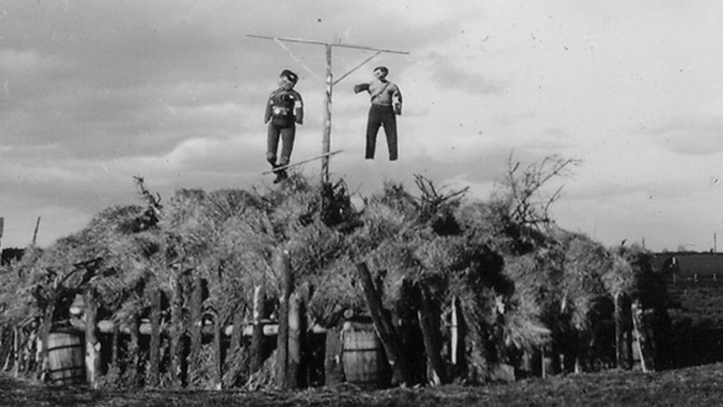 Frank Bond served as a flight mechanic with the Royal Air Force during the Second World War and was on an engineer’s course at RAF Locking in Weston- super-Mare at the time of the announcement of victory in Europe. He recalls the excitement among the men and their extreme reaction, setting fire to benches, which was only stemmed by getting a wake up call from the commanding officer! That excitement, he says, also came with the realisation that the war with Japan was still ongoing and the fear they could be sent there. After VE Day he was transferred to RAF Spitalgate before being sent to the Far East at Christmas 1945. He eventually returned to his home in Eton Wick, where he still lives. Image: Photo of bonfire prepared for VE Day celebrations at RAF Banff, NE Scotland courtesy of Andrew D Bird Interview with Frank Bond by Janice Hunter