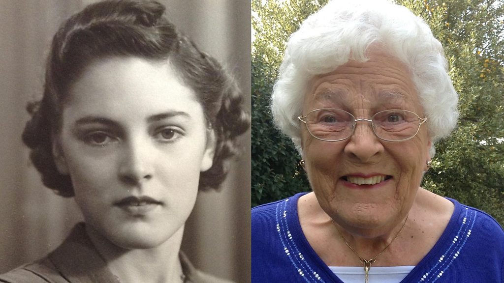 During World War Two, Gwen lived in Kemsing in Kent. Gwen was 11 when war broke out and throughout the war she kept a personal diary, which she has kept to this day. Gwen says her entry for VE Day illustrates how Kemsing celebrated, although she says it sounds very gruesome. The locals in Kemsing built effigies of Hitler and Mussolini and she remembers that her father (a butcher) stabbed Hitler. She says people were cheering and celebrating in the street and that the church bells were ringing throughout the day. Gwen recals going to the top of the hill in Kemsing and seeing the area lit up for the first time in years. Gwen reads the full extract from her diary for VE Day, Tuesday 8 May 1945. Image: Gwen then, and now