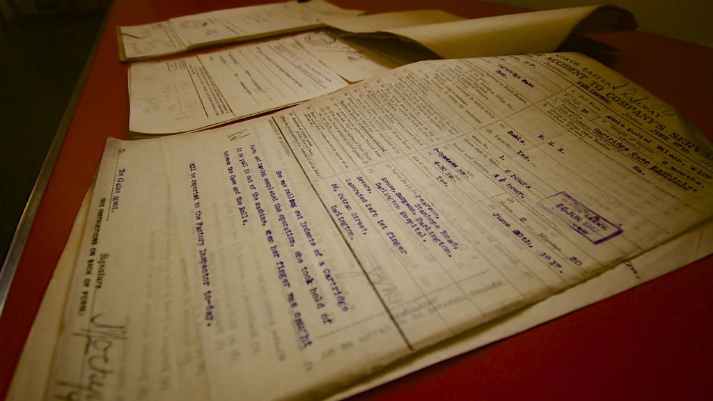 Darlington women were manufacturing explosives in the town’s "shell shop". But recently discovered records, which were going to be thrown out; give an interesting insight into the dangers they faced. One caught her hand while another shows the injuries she received when a heavy shell landed on her foot. The site is now a supermarket. However, the clock from the original factory is still there. It takes pride of place at the front of the building. A reminder of the role young women played in Darlington and the dangers that they faced. The paperwork shows they received compensation and wages while they were off on sick leave as a result of their injuries. Location: North Road, Darlington North Road, DL1 2PY Image: Records, courtesy of Steam Museum