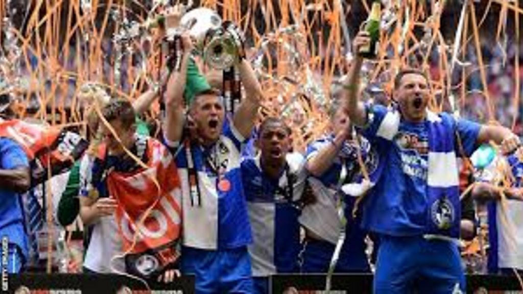 Celebrating Bristol Rovers return to the football league.