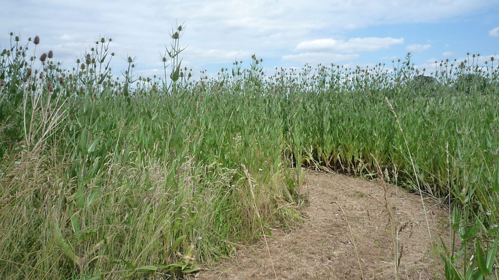 Chris Skinner shows Paul Hayes the new teazel walk at High Ash Farm.