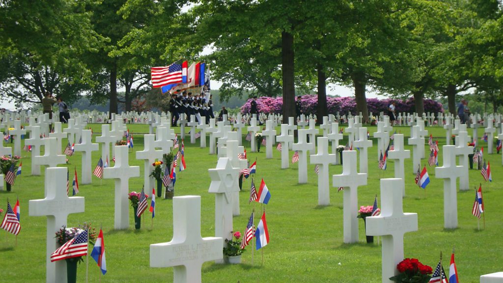 Outside the small Dutch village of Margraten, near the border with Germany, there lies a cemetery. It's the final resting place of more than eight thousand American soldiers, and it’s one of more than a dozen World War II burial grounds for American troops in Europe. But what's different about the Margraten cemetery is that each of the graves there has been adopted by a Dutch citizen who cares for the gravesite. Ton Hermes is the president of the foundation behind this effort. Picture: Dutch and US flags decorate the graves at the American Cemetery and Memorial in Margraten. Courtesy of Ton Hermes