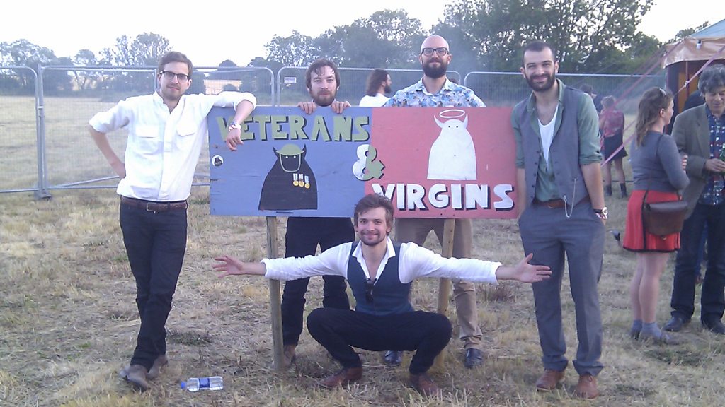 Dave Gilyeat speaks to blues rockers Little Brother Eli after their set at Truck 2015 in Hill Farm in Steventon