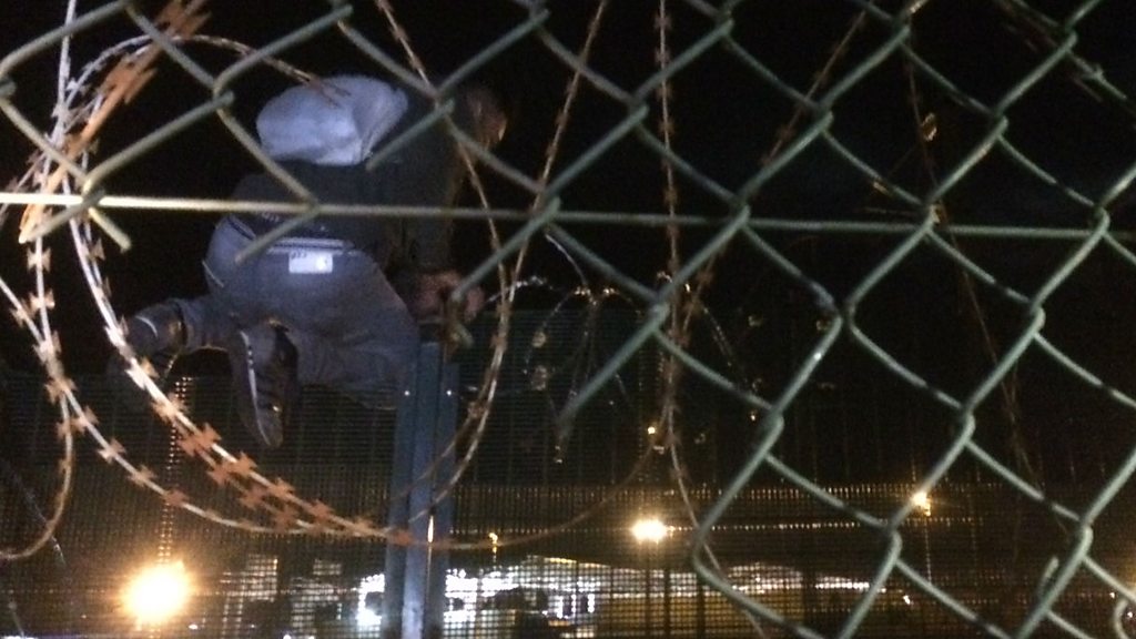 Migrants have made fresh attempts to reach Britain from Calais overnight, in spite of new security measures announced on Wednesday. Large groups were seen heading towards the Channel Tunnel terminal for a third night running. Zoe Conway has spent the night with some of them. "Every night we'll try to get to England," said Karim, a migrant from Syria.