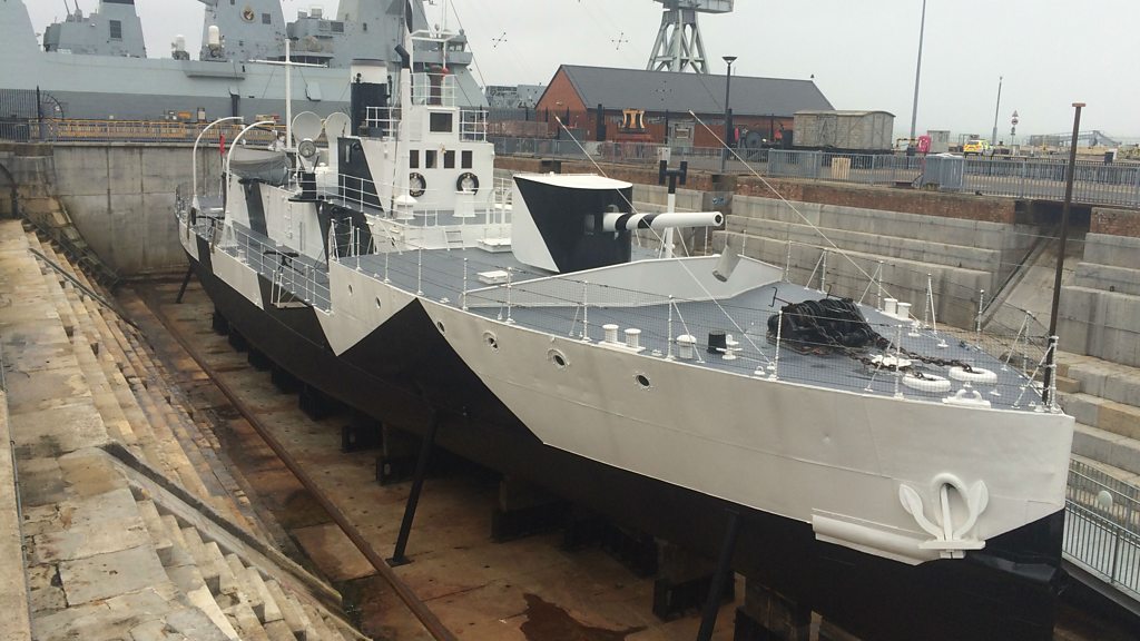 Project director Matthew Sheldon takes Neil Sackley on a tour of the refurbished warship