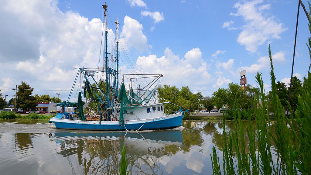 Ten years ago Hurricane Katrina devastated New Orleans, leaving over 1800 people dead and causing billions of dollars of damage. It was dramatic and destructive - but Katrina has been described as 'like a cold suffered by a cancer patient'. The cancer is the erosion of the coastal wetlands of Southern Louisiana, a slow motion environmental disaster that has continued almost unabated since Katrina. Caused by the taming of the Mississippi and oil and gas exploration, a football field of coastal land washes away every hour, and with it the homes, places and livelihoods that have sustained the storied Cajun culture. James Fletcher travels to Bayou Lafourche and the town of Leeville to get to know one community facing the reality of losing their past and their future. Produced and presented by James Fletcher (Photo: A shrimp boat on Bayou Lafourche, southern Louisiana)