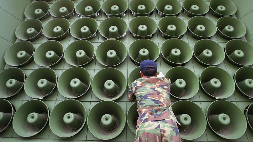 American radio journalist Chance Dorland explains how South Koreans are taking North Korea's war threats. (Picture: South Korean soldier takes down propaganda loudspeakers on the border with North Korea/ Credits: Chung Sung-Jun/Getty Images)