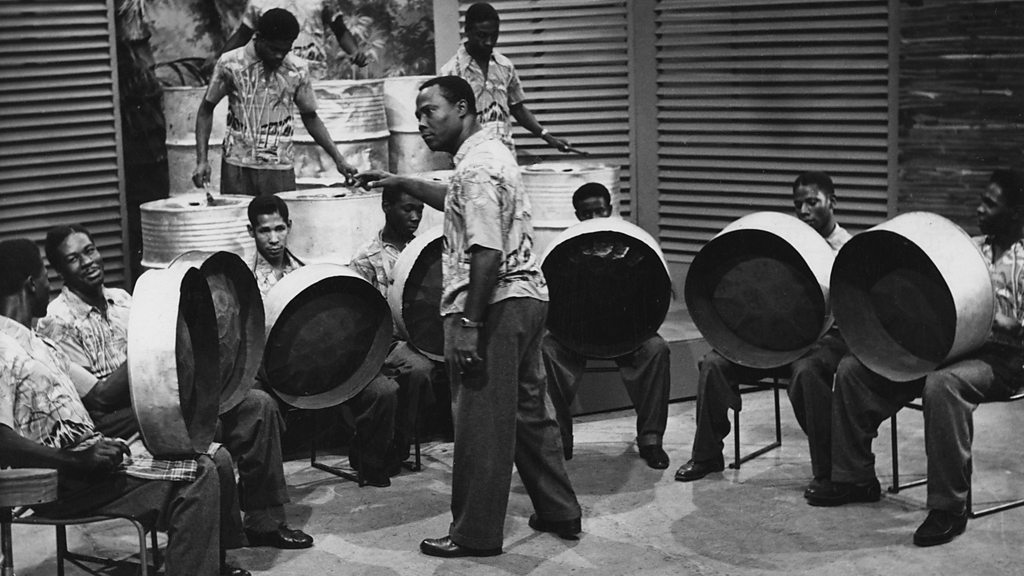 Dr Kim Johnson charts the evolution of steel-pan music in Trinidad. When teenage street gangs began knocking on hub caps, pan lids and steel drums in the 1930 and 40s, their battles became musical rather than physical. It was a rivalry that resulted in a new kind of music, now celebrated around the world. Photo: Trinidad All Steel Percussion Orchestra (1951 BBC)