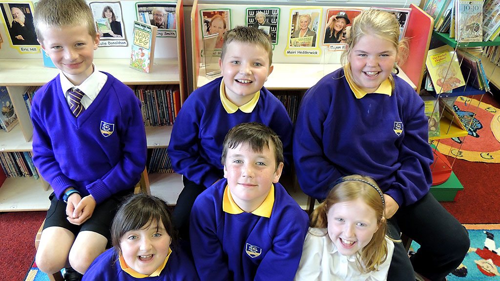 Teachdaireachd ann am botal le sgoilearan bho Bhun-sgoil Lacasdail