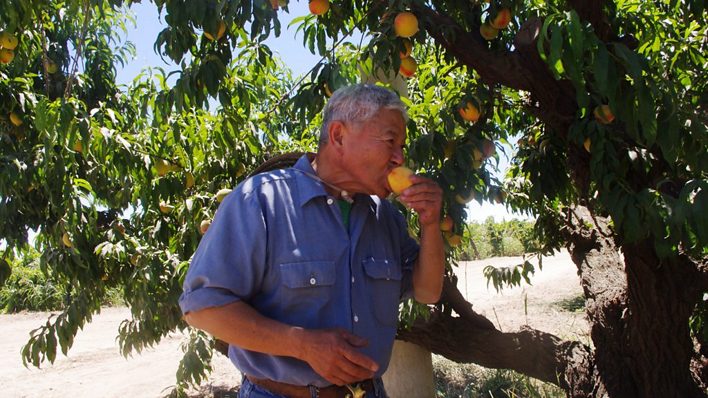 Peter Day continues his reports from the drought stricken central valley of California. This week he visits two family farms. Both grow fruit and nut crops. Both reflect the central role of migration and water in Californian history. They were founded by incomers; one from Japan, the other Mexico. But that is where the similarities end. These farms are separated by heartless geology. One has access to good quality groundwater, the other does not. Producer: Rosamund Jones (Picture shows farmer, Mas Masumoto eating a peach from his farm)