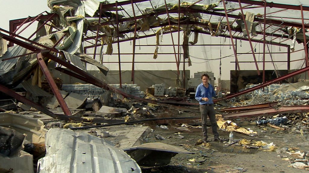 It is nearly six months since an international coalition led by Saudi Arabia began a bombing campaign over Yemen. The aim of the Saudi-led air strikes is to restore the internationally recognised president to power after Houthi rebels seized large parts of the country, including the capital Sanaa. So far more than 2000 civilians have lost their lives and a blockade by land sea and air is preventing food fuel and medicines from reaching the north of the country. The United Nations warns of a looming famine and calls this a humanitarian crisis comparable to that in Syria. Yet the strikes and the blockade are happening with the sanction of the international community, under resolution from the UN Security Council. The United States and Britain are also providing the Saudi-led coalition with weapons and logistical support. Human rights organisations say the strikes often target civilians and may amount to war crimes. Gabriel Gatehouse has been to Yemen to investigate. (Photo: Gabriel Gatehouse stands by what remains of a water bottling plant near Abs in the north-west of the country)