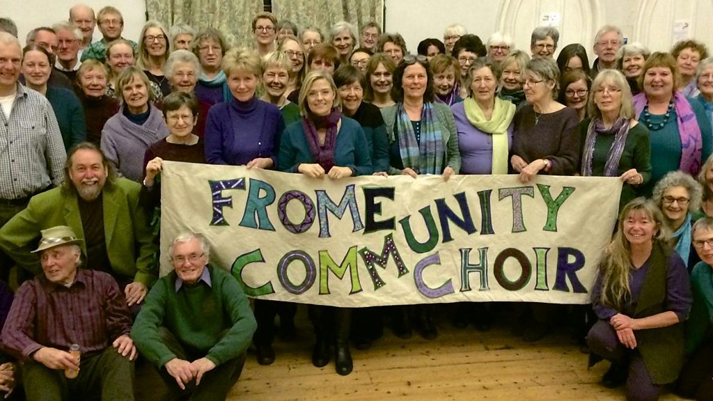 Meet Frome Community Choir. Set up by Nickomo & Rasullah Clarke, pioneers in the natural voice and community choir movement, the group is non-auditioning, and they learn all their music by ear.