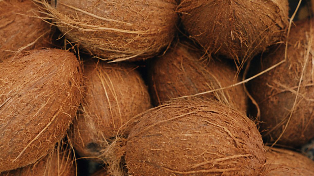 A member of the palm family, coconuts originate in the Pacific region. There are more coconut palms in the world than people and each one produces about 50 nuts a year. Picture: Coconuts, Credit: Getty Images