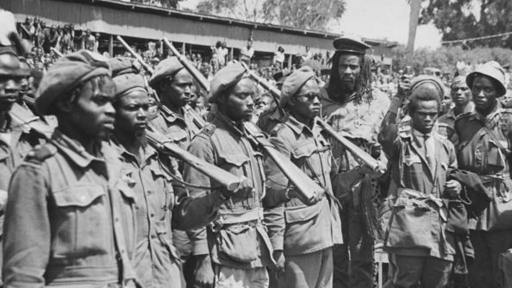 Report on the Mau Mau uprising in Kenya and its effects on the country 30 years later. Picture: Mau Mau troops, Credit: Getty Images