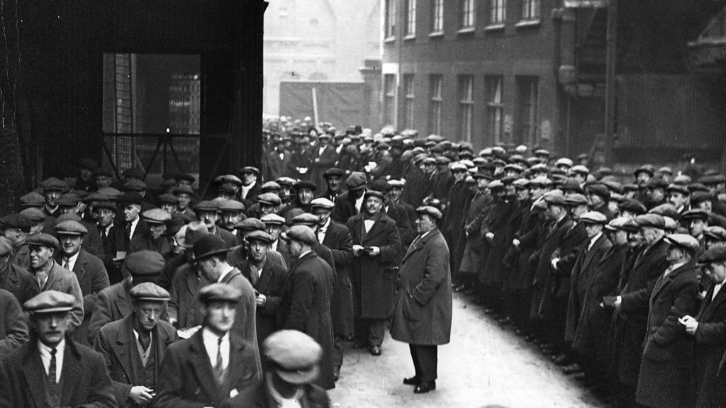 In October 1929, Wall Street crashed and the greatest depression the world had ever seen began. Harry Leslie Smith tells Witness his story of growing up in extreme poverty in the north of England, and how his sister died of TB in a workhouse infirmary, too poor for proper medical care. Photo: unemployed men queue for work at a dockyard during the Great Depression (Credit:Fox Photos/Getty Images)