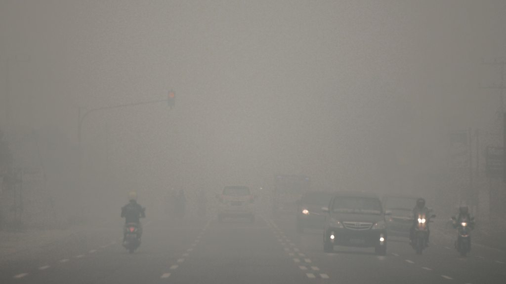South East Asian Haze is due to deliberate fires and this year’s exceptional El Nino, according to Susan Minnemeyer of Global Forest Watch. Photo Motorists driving through thick haze in Palangkaraya, Indonesia
