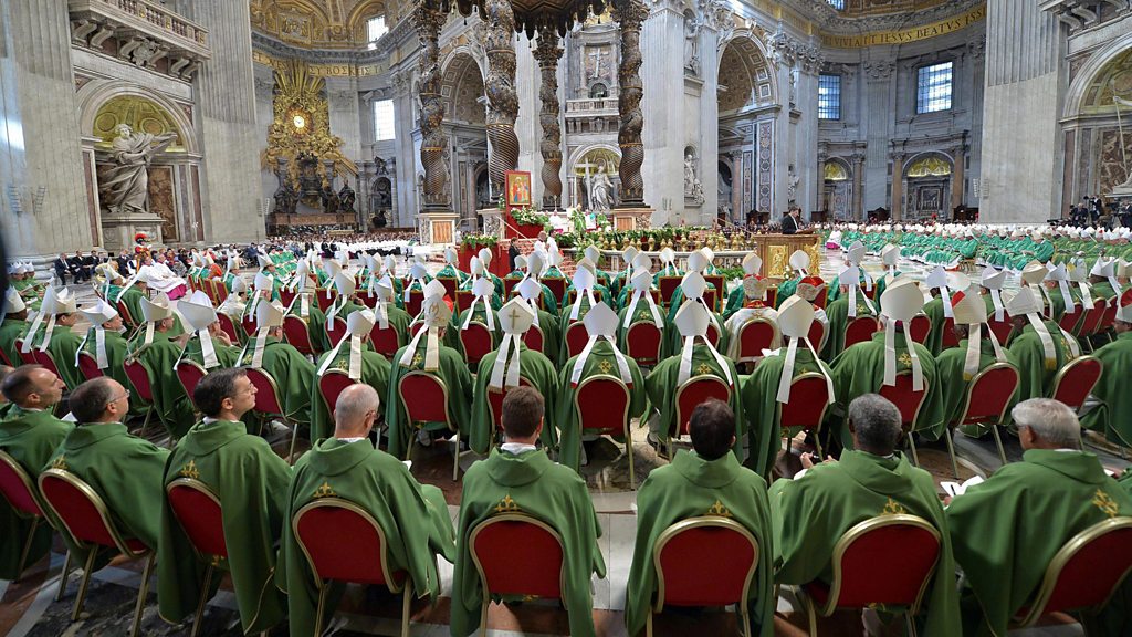 Pope Francis has brought together nearly 300 bishops from all over the world for a special Synod on the Family. He has asked them to speak frankly and with courage about his Church’s most divisive teachings – those that affect the sex lives of more than billion people. The stakes are high. Just calling the synod has raised hopes among liberal Catholics, who would like Rome to relax its teachings on homosexuality, birth control and divorce and remarriage. But will the reformers succeed given that the Church’s new powerhouse is Africa, where many believers want their bishops to uphold tradition and doctrine? In the final episode, Helen Grady travels to Rome to try to understand what is happening inside the Synod. All the key meetings take place behind closed doors, so it’s not obvious what the bishops are talking about or which way the debate is heading. Helen speaks to bishop delegates from Ireland, Nigeria, Australia and Algeria and gets their take on what is happening in the surprisingly modern conference room where the Synod meets every day. And she tries to find a way through the spin and intrigue that are part and parcel of reporting on the Vatican. Interviewees include: Archbishop of Armagh, Eamon Martin; Archbishop of Kaduna, Matthew Man’oso Ndagoso; Bishop of Oran, Jean-Paul Vesco; Archbishop of Syndey, Cardinal George Pell; and Christopher Lamb, Rome correspondent for the international Catholic magazine The Tablet. (Photo: Pope Francis celebrates the closing Mass of the XIV Ordinary Meeting of the Synod of Bishops in the Saint Peter"s Basilica. Credit: EPA)