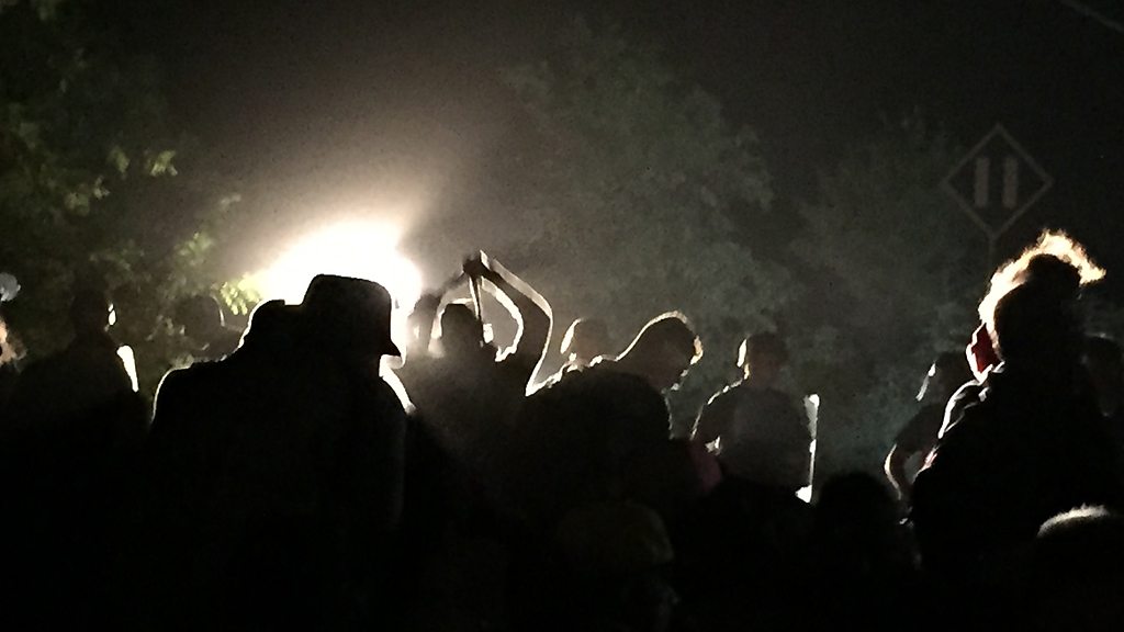 A riot breaks out and thousands - including the family - storm across the border