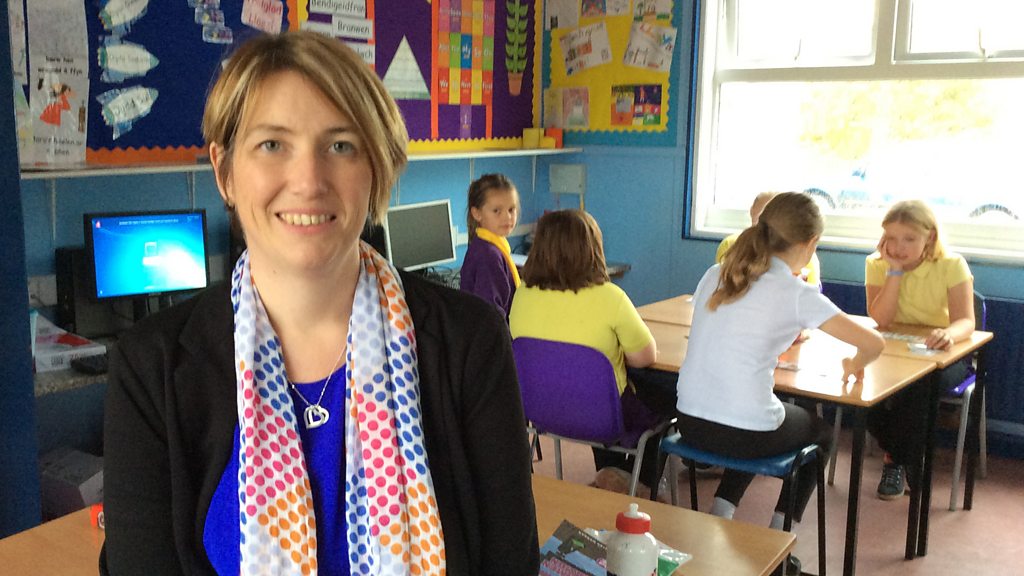 Mae'r brifathrawes Rhiannydd James yn pryderu am y pwysau gwaith ar athrawon.