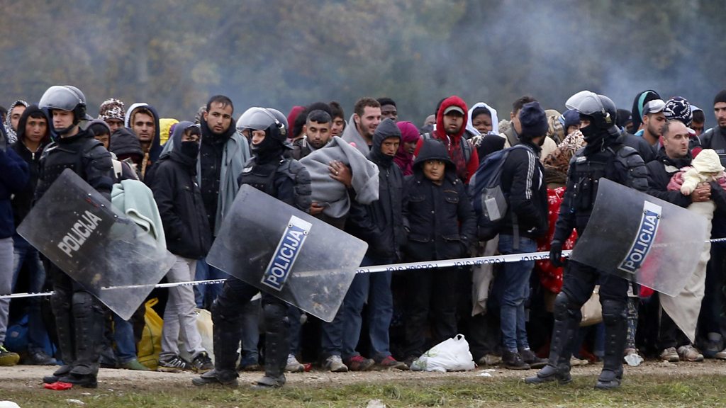 European Union ministers are to rush through proposals to strengthen the EU's external borders, with tighter checks on all passengers entering the Schengen zone (that's the passport-free area of free movement within the EU). It's in response to the Paris attacks of 13 November 2015. We hear voices from both sides of the debate in Europe, from the Euro-sceptic Swedish Democrat Member of the European Parliament, Peter Lundgren; also the Maltese MEP Roberta Metsola and the first vice president of the European Commission, Frans Timmermans. They were part of our World Questions debate in Brussels. (Photo: Slovenian officers guard a group of migrants blocked after crossing from Croatia in October 2015) (Credit: AP/Darko Bandic)