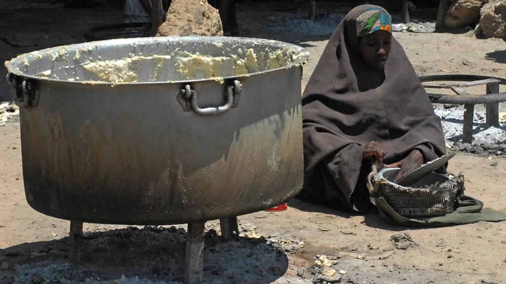 The talks on climate change are continuing in Paris with the aim of reaching a deal on global carbon emissions and rising temperatures. Senegal's President Macky Sall has told the BBC that climate change is more than a negotiating point in Africa. (Photo: A Somali girl sits inside a feeding centre in the district of Mogadishu on October 17, 2011, as thousands flee severe droughts that have hit southern Somalia. Credit: Mohamed Abdiwahab/AFP/Getty Images)