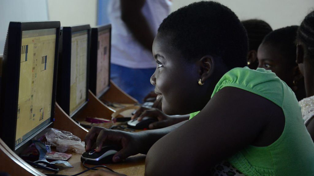 Nima is one of the largest and poorest districts in the Ghanaian capital Accra. The Achievers Club of Nima was set up in 2011 by a young girl who escaped a forced marriage aged 12, and now provides extra lessons for girls in the area. Bola Mosuro visited their classroom on the first floor of a local mosque to report on a coding class for girls. But the tables were turned when 13-year-old Adama took Bola’s mike and proceeded to narrate a tour of the area, and talk about the problems young girls living in Nima face. Image: A student at a coding class in Accra, Ghana. Credit: James Fletcher