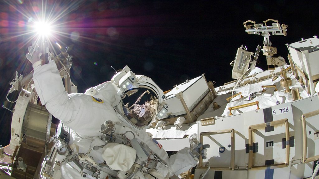 Astronauts on the International Space Station go outside to fix a stalled component called the mobile transporter, a rail car that moves a robotic arm up and down the length of the structure. The two crew members will spend three and a half hours on the space walk. Dr Lucy Rogers from the Council of the British Interplanetary Society explains what it involves (PHOTO: NASA astronaut Sunita Williams on a spacewalk in 2012. CREDIT: NASA/Getty Images)