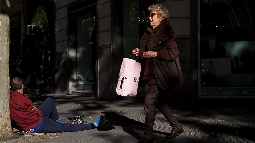 The richest 10% of Americans earn half of all of income. In Britain, the top 10% hold 40% of all the income. Inequality is not just an issue for rich countries. A billion people have been lifted out of poverty since 1990, and inequality has been rising in many other countries too. So, how much inequality is too much? Many may recoil from such a question - inequality is a dirty word. But this programme isn't about fairness. This programme is about economics – and how far inequality affects growth and prosperity. Presented by Linda Yueh. (Photo: A woman walks past a poor man. Credit: Getty Images)