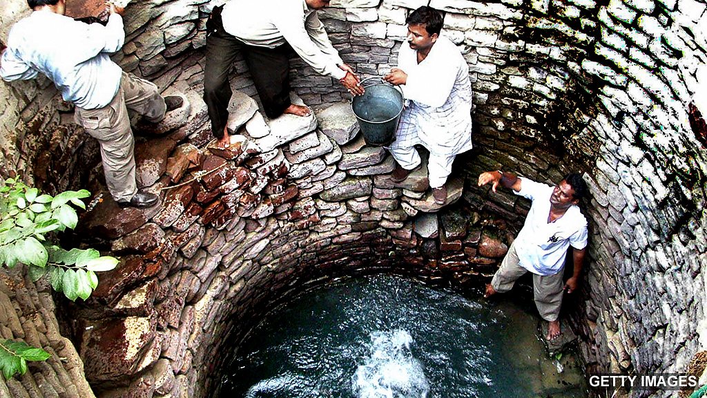 Indian sociologist Lyla Mehta argues there’s plenty for all: the problem is distribution. Photo: Indian men load buckets from a 160 year old well in Bhopal, India. Getty Images