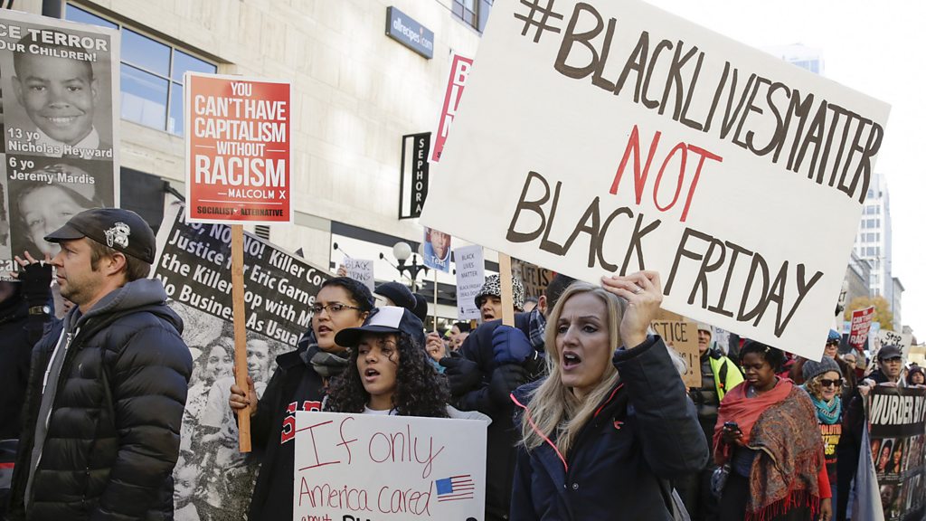 Can the Black Lives Matter movement change America? It has become a familiar pattern over the last 18 months, in cities across the United States. An African-American is killed by police. News crews descend on the city. Protests break out - occasionally leading to arrests, or riots. And online, one phrase trends - 'Black Lives Matter'. The slogan was coined after a jury acquitted a Florida neighbourhood watch volunteer, George Zimmerman, of the murder of black teenager Treyvon Martin. It was a polarising decision, and young activists were so upset about the verdict that their heartfelt Facebook posts and tweets became the basis of a grassroots movement. But it was events in Ferguson, Missouri which turned those words into a worldwide rallying cry. Activists poured in to protest the shooting death of Mike Brown. The events of one day in August 2014 are among the most disputed in recent American history. A federal investigation found no grounds to press charges against Darren Wilson, the police officer who shot Brown, but many people refuse to accept its conclusions, and a separate report did find systemic abuse of the civil rights of black people by local police. Mike Brown’s father tells us he’s heartened by the reaction to his son’s death hopeful that his son’s death will lead to change in America. Although the protests in Ferguson led to violence - both police and protesters point the finger at the other side for causing it - it also thrust the slogan 'Black Lives Matter' into the spotlight. Activists returned to their home towns with a renewed sense of purpose. The movement has picked up steam with every report of a police shooting, or death in police custody, and many are trying to broaden the agenda to include education, economics, and politics – all of which, they say, are affected by the lingering effects of slavery and racism in America today. It’s often been controversial – many are opposed to the movement, and they have their own hash tags: 'All Lives Matter' and the pro-police 'BlueLivesMatter'. Some law enforcement officials blame the movement for what’s called the “Ferguson effect” – where cops are holding back for fear of being accused of being racist. They say it’s hurting their ability to fight crime. Within the movement itself, there are broad areas of consensus but also disagreements about tactics and goals. Some believe in working within the political system – raising money, meeting with police and politicians and devoting energy to conventional politics. Others believe the activism should stay staunchly outside the system, and concentrate on community organising, confrontational protest and civil disobedience. Mukul Devichand and Mike Wendling have been traveling around the United States, talking to Black Lives Matter activists, the parents of young black men shot by police, civil rights elders like the Rev. Jesse Jackson, and police officials. In an election year that will be crucial to the country’s future, can Black Lives Matter change America? (Photo: People march at a Black Lives Matter protest on Black Friday in Seattle, Washington, 2015. Credit: Jason Redmond/AFP/Getty Images)