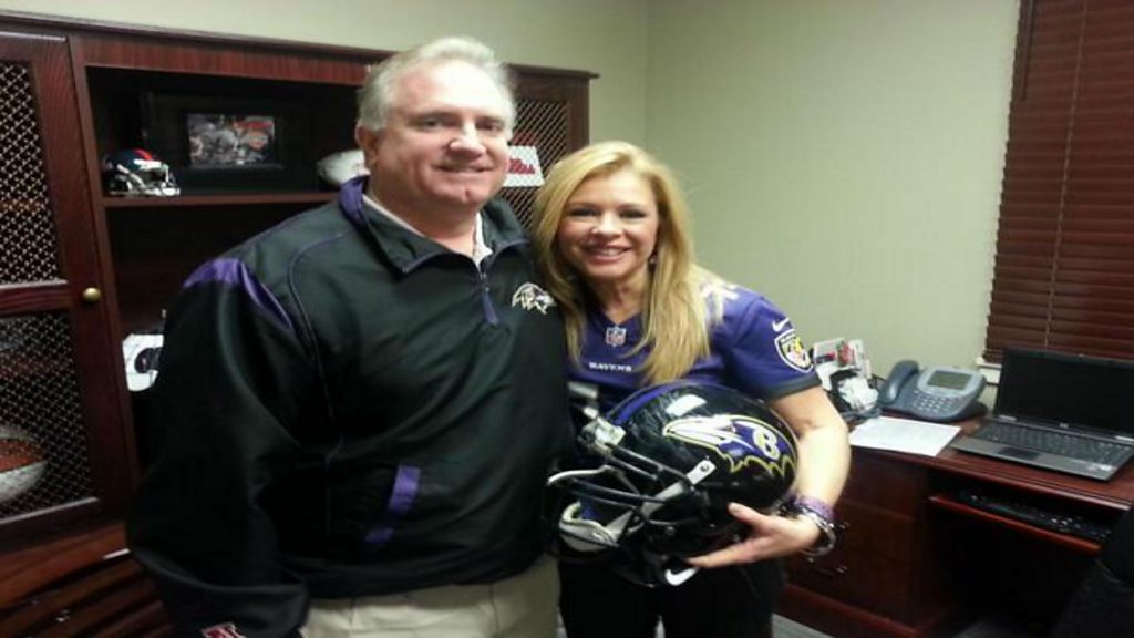 The Super Bowl is part sporting spectacle, part Hollywood blockbuster, but for one player in particular that's a particularly fitting description... Carolina's Michael Oher had his life brought to the big screen in the Oscar nominated "The Blind Side". It tells his story of being taken in by a family who raised him as their own and set him on the path to sporting success Sandra Bullock won a best actress Oscar for her portrayal of Oher's adopted mother, Leigh Anne Tuohy. However there's nothing like hearing the real life story, and that's what Caroline Barker did back in 2013 when she went to meet Leigh Anne, her husband Sean ahead of their son's first appearance at the Super Bowl. (Picture: Leigh Anne, her husband Sean preparing for the Superbowl when Michael played for the Baltimore Ravens, credit: Joel Hammer/BBC own)