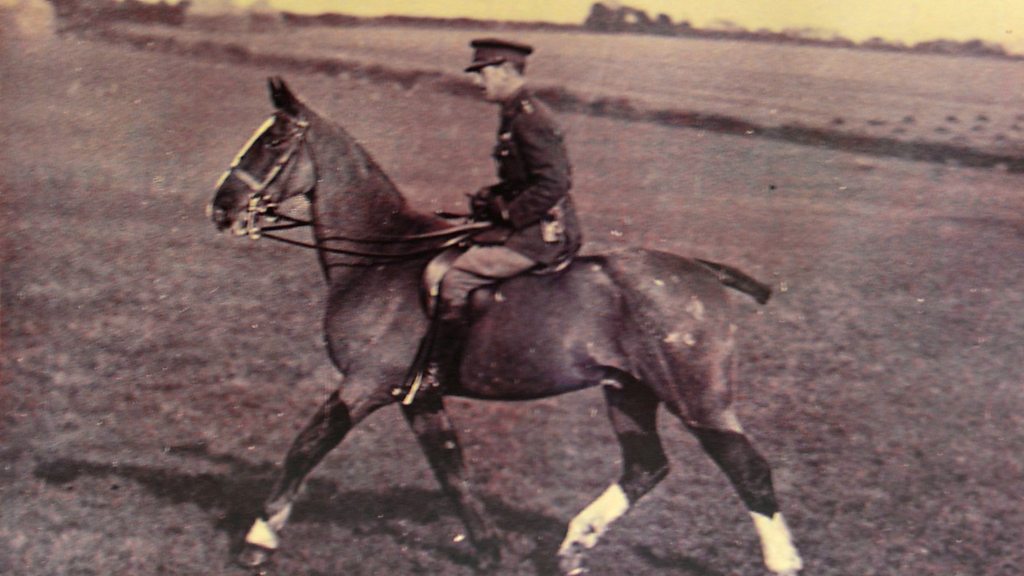 The grounds of the Royal Dublin Society are best known as the home of the prestigious Dublin Horse Show. The Society itself was set up in 1731 to promote good agricultural and scientific practice. But during the First World War, the RDS became a Remount Depot. Horses from all over the island were brought to its stables, graded, trained for warfare and then sent on to the front. Nine million horses and mules died during the war. Noel Mullins from the Royal Dublin Society tells the story of Ireland's war horses - and of Gladeye who survived the war, returned to jump at the RDS and even attended a royal ceremony for veteran war horses in London. Location: RDS Arena Dublin. 53°19'32.9"N 6°13'45.2"W Image: Gladeye & Brigadier Walter Brooke Image courtesy of Noel Mullins