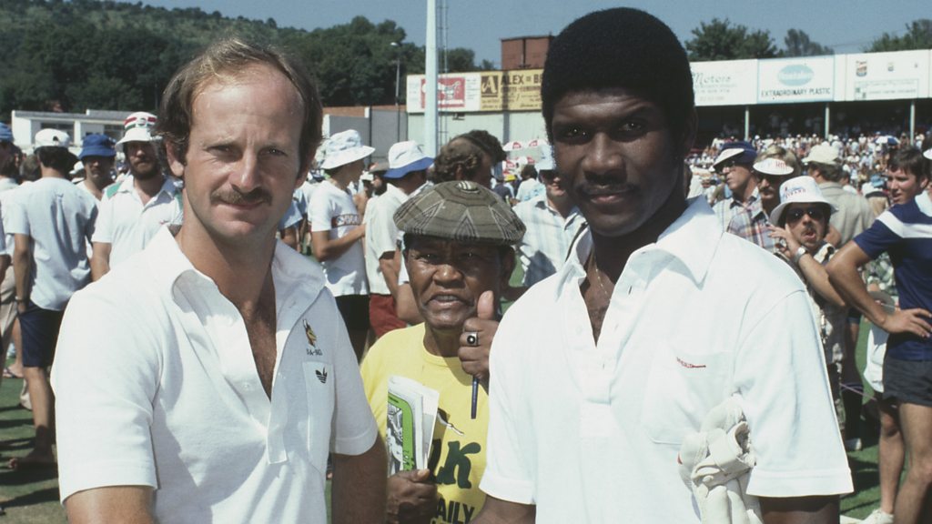 The seventeen West Indies cricketers who toured aparthied South Africa in 1982-83 were applauded as heroes in the Republic but seen as outcasts back home. All were banned for life from playing any form of cricket, and ostracised by their local communities. Nine of the rebels forged new careers, and new lives, outside of the Caribbean. The captain, Lawrence Rowe, now lives in Miami, but returned to Jamaica in 2011 to open the new pavillion at Sabina Park, to be named in his honour. It was changed four months later after a storm of protest. Photo:Cricketers Gary Kirsten of South Africa (left) and Lawrence Rowe of the West Indies in Durban for a one-day international during the rebel tour to South Africa of February 1983. Credit: (Adrian Murrell/Getty Images)