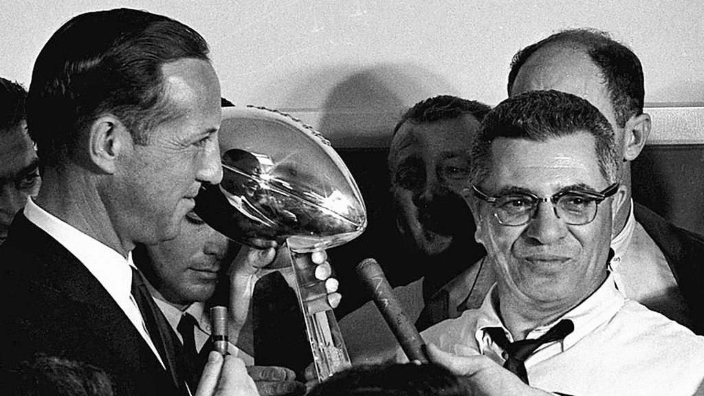 Tom Brown was part of the Green Bay Packers team that won the first two Super Bowls. But, back then, he got paid more for playing Baseball. Picture: The 1967 Super Bowl trophy is presented to Vince Lombardy, the coach of the Green Bay Packers. Credit: Associated Press.
