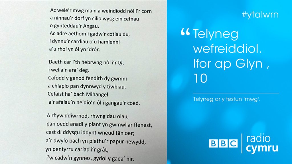 Telyneg Ifor ap Glyn o dîm Caernarfon ar y testun 'Mwg'. 10 marc