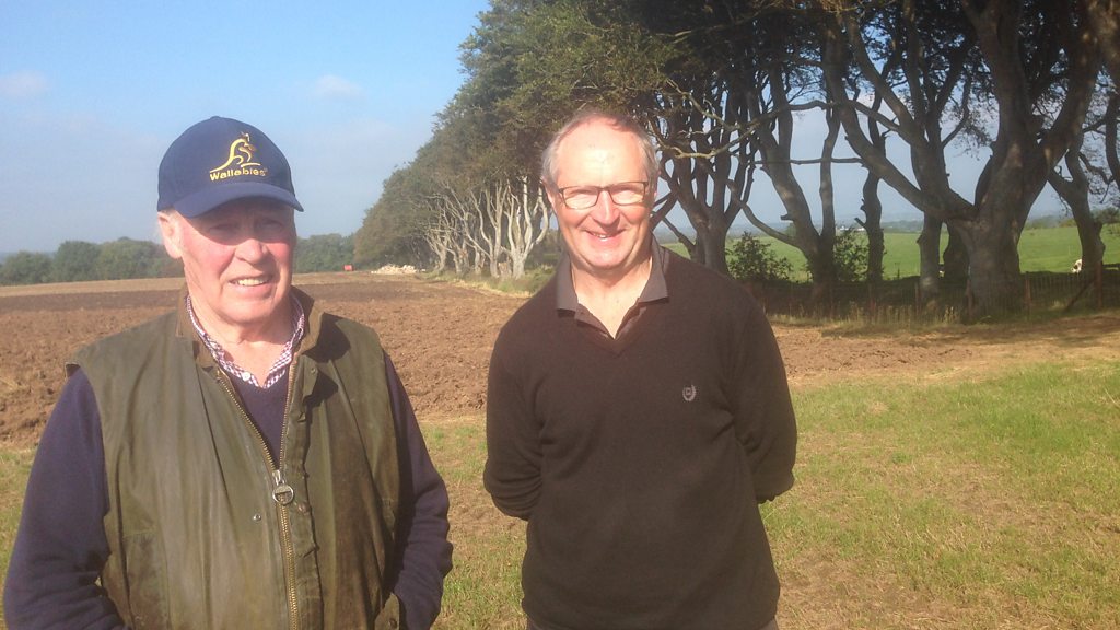 Local man Frank McHenry (L) recalls tales of the Dark Hedges, including the Grey Lady