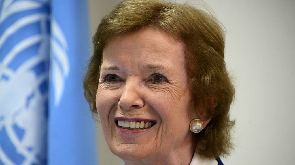 An interview with Mary Therese Winifred Robinson, the first female President of Ireland, and the United Nations High Commissioner for Human Rights. Presenter: Carrie Gracie. Picture: Mary Robinson, Credit: Getty Images