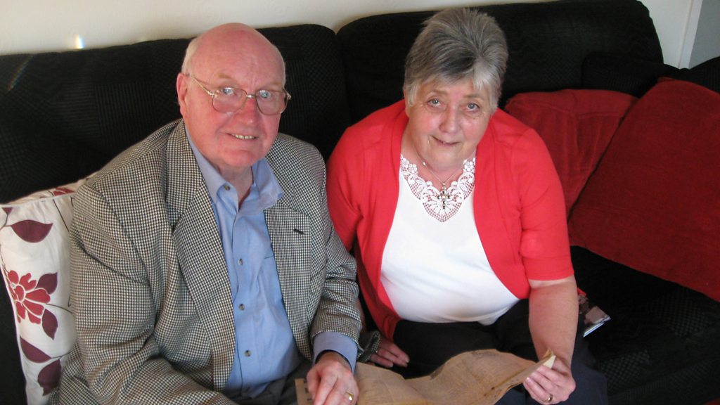 8. Pat Larkin shows John Bennett the Belfast Telegraph from the day her father died in the crash, Wednesday 10th January 1945