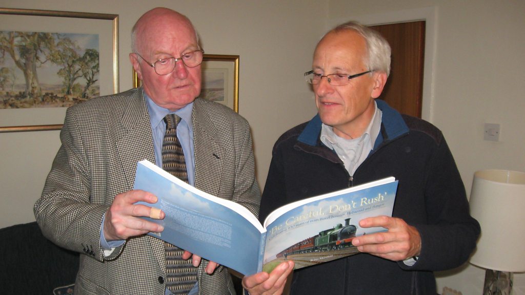 10. Railway historian, Robin Masefield, in discussion with John Bennett about the inquiry into the accident